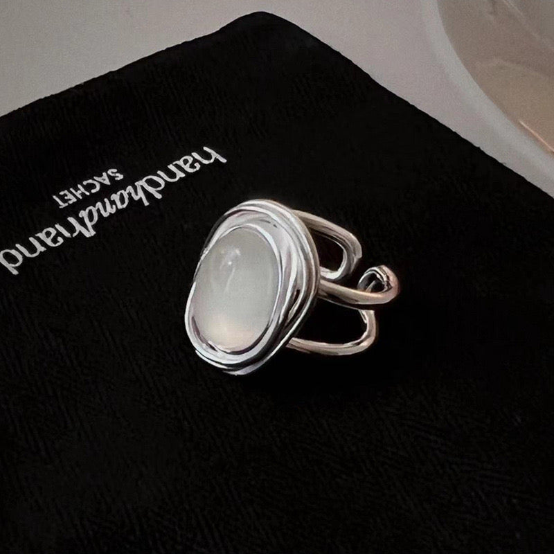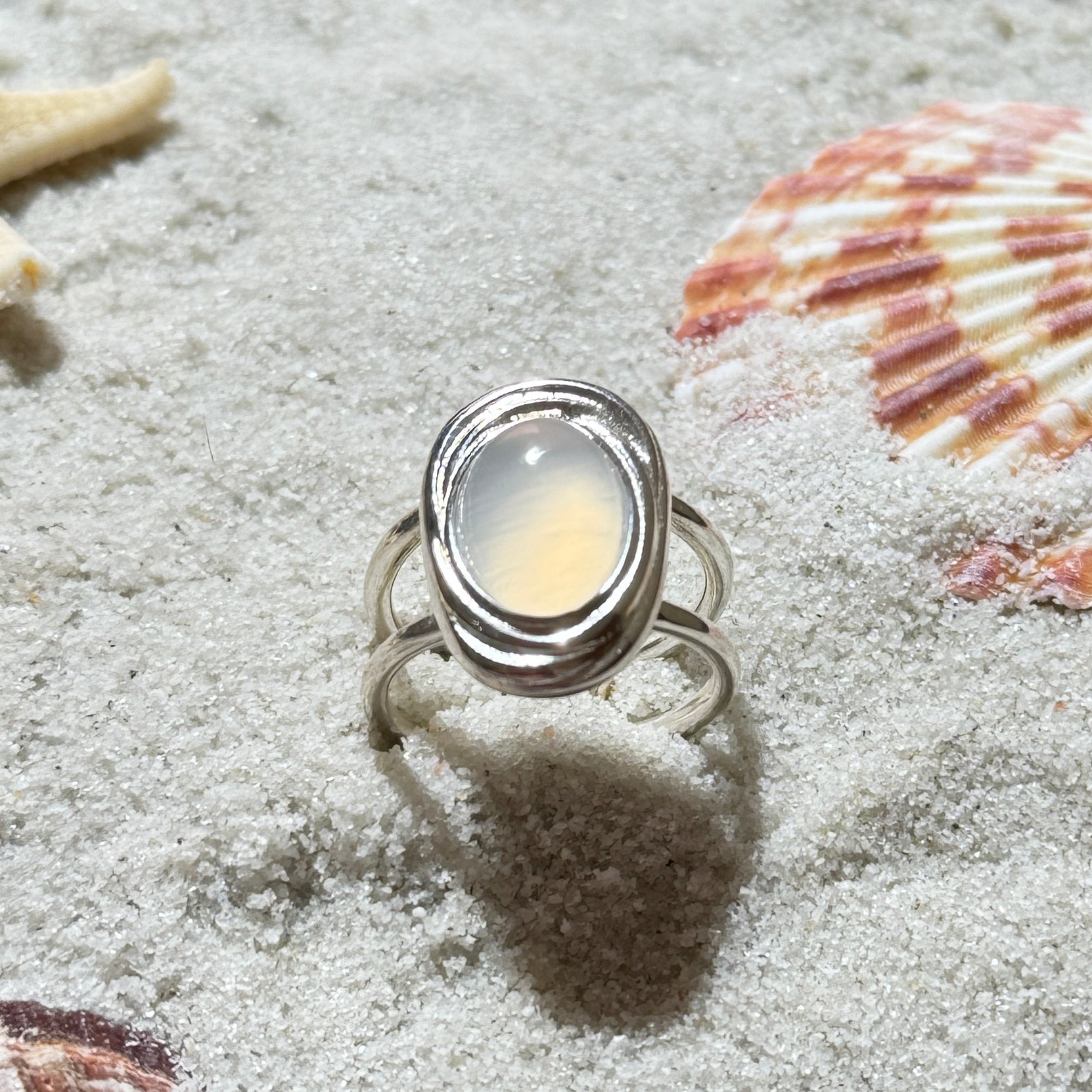 Anello multilinea in argento sterling S925 con agata bianca, anello dalla trama semplice ed elegante. Questo anello è ideale per chi cerca un gioiello che esprima equilibrio e raffinatezza. Misura regolabile.